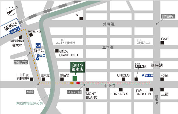 位于银座和新桥站之间,沿着银座最著名的大街(中央大街)直走是最佳的到达方式。