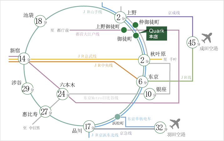 上野本店 银座店 新宿店 中野店 横滨店 札幌店 仙台店 静冈店 名古屋站店 名古屋荣店 名古屋大须店 京都店 梅田店 心斋桥店 神户店 广岛店 福冈店 Quark SALON OSAKA 香港