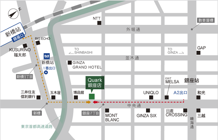位於銀座與新橋站中間位置﹑銀座最出名的主要街道(中央通),地理位置非常方便的一家店舖。
