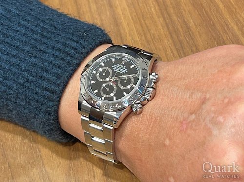 M様 いつもクォーク福岡店をご利用頂き誠にありがとうございます。今回お選び頂きました『DAYTONA/Ref.116520』ですが、製造期間が極端に少ない2016年製の最終仕様の個体となります。存分にお楽しみ頂けますと幸いでございます。ご愛用頂く中で気になる点等ございましたらいつでもお気軽にご相談下さいませ。今後とも末永いお付き合いの程、どうぞ宜しくお願い致します。