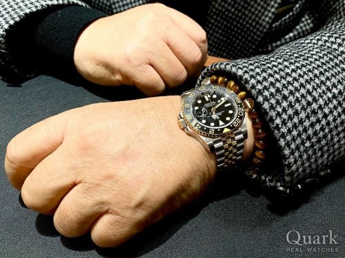 I様、この度はクォーク名古屋駅店をご利用いただき、誠にありがとうございました。この度ご購入いただいたRef.126713GRNRは、華やかなイエローゴールドが使用されており、灰/黒ベゼルを彩ってくれるモデルとなっております。I様が着用されているブレスレットとも合わさって非常にお似合いでした。永く愛用下されば幸いでございます。ブレスレットの洗浄等、アフターフォローをしっかりとさせていただきますので、お気軽に店舗にお立ち寄りください。今後とも末永いお付き合いの程よろしくお願いいたします。