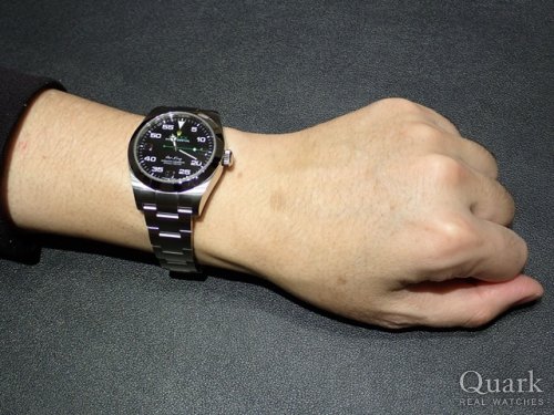 以前、店頭でRef.116900を見て、デザインに一目惚れしました。他のモデルにはない文字盤のデザインは本当に素敵ですね!昔のエアキングに比べてケースが厚いところも気に入っています。