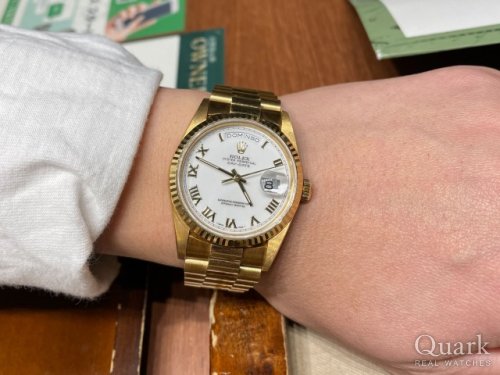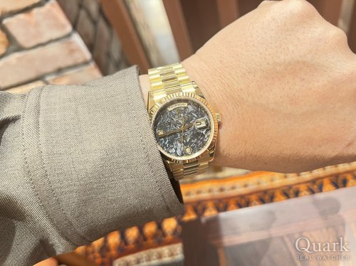 デイデイト貴石ダイヤル、その中でもレアなアンモナイトダイヤルが気に入って購入を決めました!2006年式の時計ですが、事業を始めた年でもあるので、記念の1本としても大切に所有したいと思っています。