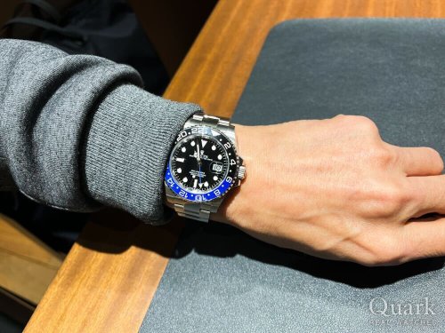 ご予算に合わせてGMTマスターⅡの青黒ベゼルをお探しのところに、大須店の限定商品をご案内させていただきました。メンテナンス前ではありますが、高年式でオーバホールも必要無い個体でお買い得でございました。人気のあるモデルですので、タイミングよく在庫のある時にご案内できてなによりでございました。