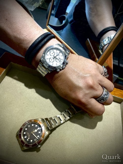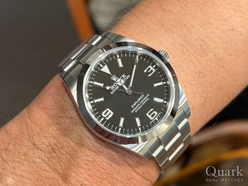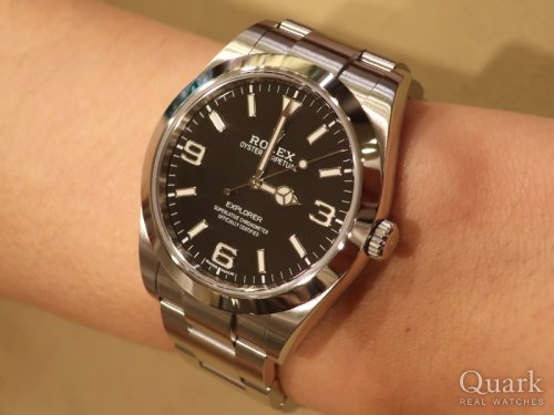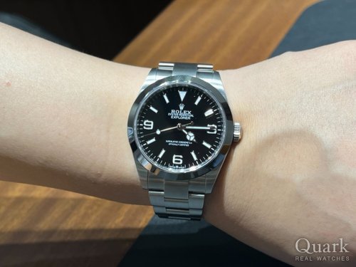 F様、この度はクォーク仙台店をご利用いただきまして誠にありがとうございました。この度お選びいただきました『EXPLORER I Ref.214270』は、現在は生産が終了した39mm径ケースのエクスプローラーIです。エアキングRef.116900とケースサイドこそ似ておりますが、ダイヤルデザインは勿論、厚みも異なりますので、着用感もまたひと味違ってまいります。『30歳を前にROLEXを』という節目を機に、しっかりと吟味してご購入いただきました1本でございますので、是非末永くお楽しみいただけますと幸いです。なお、私どもではブレス洗浄サービスを行っておりますので、お近くへお越しの際はお気軽にご用命くださいませ。今後とも末永いお付き合いのほど、よろしくお願い申し上げます。