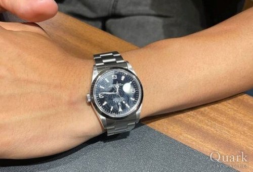 今回ご購入いただいた「Ref.214270」は2021年に廃番となったエクスプローラーⅠでございます。2010年にこれまで基本ケースサイズ36mm径のモデルから一新され、誕生した「Ref.214270」の中でもこの個体は2016年以降に文字盤の3・6・9に夜光が入ったことにより暗い中での視認性が上がり、普段使いがしやすくなりました。普段使いで考えられているM様にピッタリのお時計だと思います。また当店でブレス洗浄、タイムチェックも無料で行っておりますので、お近くにお越しの際は遊びにいらしてくださいませ。お使いいただく上で何かご不明な点等ございましたら、また久保までご相談ください。今後とも末永いお付き合いの程よろしくお願いいたします。