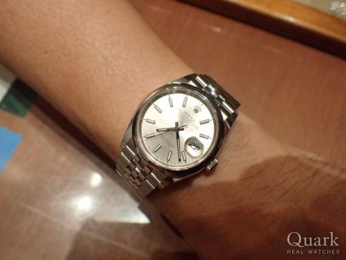 F様 この度は数ある時計店の中からクォーク銀座店をご利用いただき誠にありがとうございます。年式の新しいRef.126200をご案内する事が出来て良かったです。ドレスウォッチの特徴でもあるジュビリーブレスがお時計の高級感を際立てておりF様の腕元に良く似合っておりました。これからの季節にもオススメのお時計かと存じますのでガンガンご使用くださいませ!ブレスレットの洗浄及び調整も無料で行っておりますので、お近くにお越しの際は遊びにいらしてくださいませ。お使いいただく上で何かご不明な点等ございましたら、また林までご相談ください。今後とも末永いお付き合いの程よろしくお願いいたします。