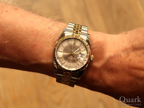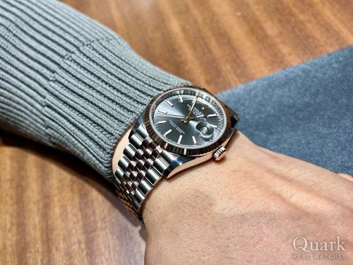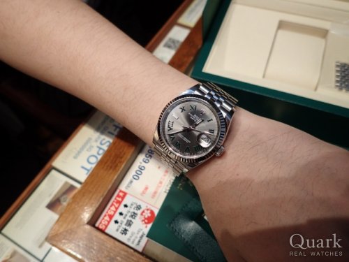 thank you very much for visiting Quark Ginza. The 36mm Date just with the gray Roman dial is a highly popular model. The use of green Roman numerals gives this watch a unique character that perfectly matches your style. It was truly an honor to assist you in choosing this timepiece. I hope it will accompany you for many years to come. If you encounter any issues while using it, please feel free to contact us anytime. We are always here to serve you. Thank you again!