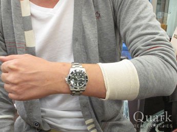 ロレックスが欲しくなってお店を探していたら、友人(左)が以前クォークで購入しており、紹介してもらいました。SUBMARINER(Ref.14060M)はほぼ決めてましたが、お店で着けてみてもフィーリングばっちり!購入を決めました。