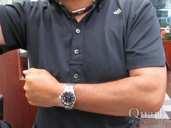 最初は仕事の先輩が旧型サブマリーナを着けていて、それを実際に着けさせてもらい、そこから火がつきました。それで、私も男に磨きをかける為、新型サブマリーナの購入を決めました。実際着けてみたらかっこよすぎました。