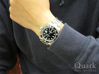 ジェームス・ボンドの幼き頃からのファンで、現行サブにNATOストラップ(20mm)をつけて常用しておりましたが、この度文字盤状態が素晴らしい憧れの660ftがファースト表示のRef.5513と出会う事が出来ました。 半ば衝動買いでしたが執念は実るというか、 運命というか・・・ 運命というのはこのRef.5513ですが、購入日が 5月13日でしたので・・・ アンティークはやはりいいです。しかし、現行も愛着あるので使い方が悩みます。私はサッカーが大嫌いで日本代表の某フォワード選手のマネはしたくないので、この写真の様にいつも着ける事にします。 クォークさんには、今度は回転ベゼルが回転してノコギリになる5513を探して下さい。購入後にオーバーホールの時はノコギリの歯まで研磨をお願いします。(別料金にて)