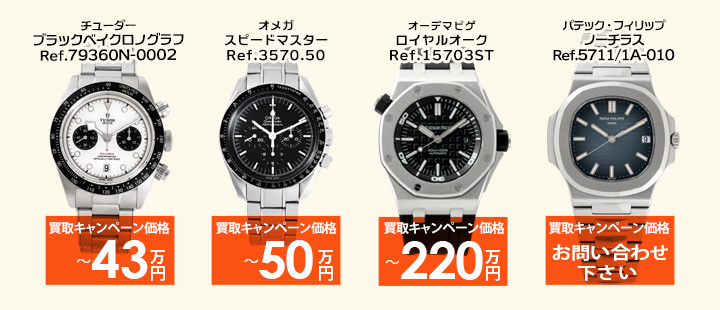 A.時計が特定できる場合(ブランド・モデル名・品番・色・仕様など)は、目安の買取額をお伝えできます。