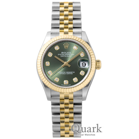 オリーブグリーンダイヤモンド入りフローラルモチーフダイヤル