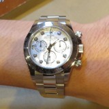 以前ステンレスのデイトナを手放して現在はクォークで買ったエクスプローラーⅡを使用しています。次に買うなら上品なホワイトゴールドのシェルダイヤと決めていました。