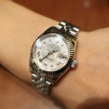 従来の26mmから2mm大型化された28mmケースを採用したステンレス製(SS)のレディース デイトジャスト。