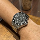 | サブマリーナーの上位機種として誕生したプロスペック・ダイバーズ。海の居住者を意味する「シードゥエラー」とネーミングされたプロダイバーのためのツールであり、ケースサイドには飽和潜水時に自動でヘリウムガスを排出する特殊機構「ヘリウムガスエスケープバルブ」が装備される。 | また、ロレックス市場でも常に中心となる人気モデルで、希少性の高い「赤シード」や「レイル文字盤」、「COMEX」などレア・ヴィンテージは高値で取り引きされる。 |