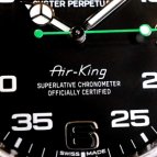 地上最速を目指すジェットエンジンを搭載した超音速カー、「ブラッドハウンドSSC」のコックピット計器を彷彿とさせる文字盤には、ロレックス最古のペットネームに相応しい1950年代当時と同じ書体の「Air-King」ロゴが印字され、ペイントながら膨らみのあるイエローのクラウンマークとROLEXロゴ・秒針がコーポレートカラーであるグリーンに統一されている。インデックスは、3・6・9のメタルアワーマーカーとプリントされたミニッツインデックスとの融合により、パイロットウォッチ特有のデザインへと進化を遂げた。デザインが大きく変更された点に加え、ムーブメントも変更されている。ムーブメントはCal.3130からミルガウスのみに搭載されたいた高精度ムーブメントCal.3131(耐磁性ブルー・パラクローム・ヒゲゼンマイ、常磁性ニッケル、リン合金製ガンギ車採用)へと変更。更に航空機内コックピットの磁場の影響から時計を保護するために、耐磁シールドまで搭載されている。