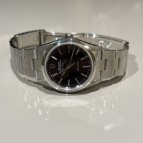 34mmケースのエアキング。文字盤は人気のブラックバータイプでございます。このあたりのケースサイズであれば、男性はもちろん、女性でもご使用頂けるユニセックスサイズです。