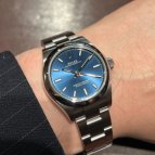 深みのあるブライトブルーダイヤル。シンプルなデザインが魅力の31ミリモデルです。2026年1月に内部点検・外装仕上げを行っており、全体的に綺麗な状態です。