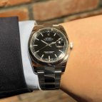 スムースベゼルのデイトジャストは少しマイナーなシリーズですが、程よい36mmケース、カジュアル・フォーマルを選ばずに着用できる点は、長く愛用する上で非常にポイントの高いモデルだと思います。以外と他の人と被ることが少なさそう・・・。私は迷わずブラックダイヤルにします。
