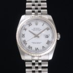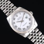 ロレックスらしいデザインで落ち着いた印象の白文字盤を選びました。