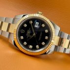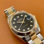 新しいモデルで探しており、ダイヤルの黒とダイヤモンド、イエローゴールドとの相性が良かったのが決め手。