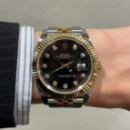 新しいモデルで探しており、ダイヤルの黒とダイヤモンド、イエローゴールドとの相性が良かったのが決め手。