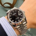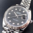 ブライトブラックの文字盤にダイヤが映える存在感抜群のデイトジャスト41。2026年に外装仕上げを行なっており、状態は綺麗です。保証書日付2025年2月。