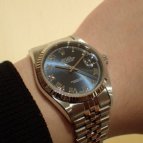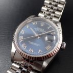 元々現行のDJのブルーダイヤルのジュビリーブレスを検討していましたが、たまたま名古屋駅店に伺ったときに久保さんに現行じゃなければ、36㎜サイズのブルーローマがあり、カッコよいですよと教えてもら…