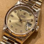 デイトジャストのコンビを使っていましたが、より良い時計が欲しいと思い、デイデイト イエローゴールド金無垢モデルの10Pダイヤ文字盤に買替えました!