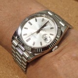 現在スポーツモデルのROLEXを二本持っていて、次購入する時はDAY-DATEにすると決めていました。実際購入する時には18KイエローゴールドのDAY-DATEとも迷いましたが、使い勝手を考えたら18Kホワイトゴール…