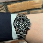 先日ついに購入!やっぱりセラミックベゼルのデイトナかっこいいです。白のデイトジャストを持っていたので、デイトナは黒を選択。セラミックとダイヤルが同じ黒でしまって見えて、ほんとにかっこいい。買って後悔はないモデルですね
