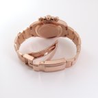 ピンクゴールドならではの優しく柔らかな輝きを放つ高級感とデイトナのメカニカルなデザインとの融合が、腕元に気品と温もりを演出してくれる。