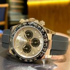 高級感と実用性のバランスが取れたデイトナでずっと探していました。素材とダイヤルカラーで悩みましたが、落ち着きのあるエバーローズゴールドとサンダスト文字盤に落ち着きました。