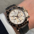 ラバーベルト、アイボリーダイヤル、ピンクゴールドといった全てのポイントにインスピレーションを感じて購入を決断。色々探しても見つかりませんでしたが、今回クォークさんで探してもらえたので購入を…
