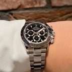 精巧な印象のブラックダイヤルは、インダイヤルのフレームとのコントラストによりデイトナのメカニカルなデザインを際立たせ、常にトップを争う圧倒的な人気を誇っている。