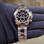 精巧な印象のブラックダイヤルは、インダイヤルのフレームとのコントラストによりデイトナのメカニカルなデザインを際立たせ、常にトップを争う圧倒的な人気を誇っている。