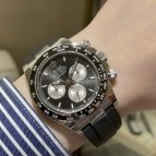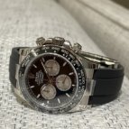 本日ご購入させていただきましたデイトナ126519LNブラックダイヤルですが2023年新作モデルということもありとても期待していた甲斐がありました。まずブラックのダイヤルですが光が当たりますとサンダストのような輝きを見せる表情がとてもかっこ良く今回のモデルから登場しましたグレーのインダイヤルの相性が相まってとてもスポーティーなモデルに仕上がっているかと思います。同WGのルマンモデルを彷彿させる仕上がりなど流石ROLEXのセンスの良さを堪能出来る仕上がりかと思います。今までRGモデルをご購入させていただいておりましたが今回は今後の資産価値やファッション性も含めこちらのWGモデルを選択させていただきました。今回の新作デイトナではCal4131に変更され肉抜きローターの鮮やかさやコート・ド・ジュネーブが施された地盤などROLEXの高度な技術が垣間見られるムーブメントですね。またムーブメント変更による裏蓋の形状変更やダイヤルのバーインデックスの形状変更などが施され先代の1165系統モデルとは違った雰囲気を楽しめますね。今回も林様をはじめスタッフの方々には大変お世話になりました。これからも大切にご使用させていただきたいと思いますので末長くよろしくお願いいたします。