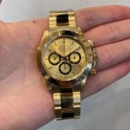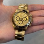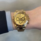 ロレックスらしさがあり、ステイタスも感じられる金無垢モデルを探していました。シャンパンダイヤルもブレスと相性が良く、気に入っています。