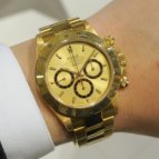 ロレックスらしさがあり、ステイタスも感じられる金無垢モデルを探していました。シャンパンダイヤルもブレスと相性が良く、気に入っています。