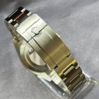 ブレスレットは、前モデルでは中空だった中央のリンクパーツが無垢パーツに変更され堅牢性がアップ。バックルにて容易に約5mmの微調整が可能なエクステンション機能であるイージーリンクを備えるなど利便性、着用時の快適性や着脱時の操作性を向上させている。