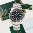 コンビ素材、イエローゴールド無垢といった素材違いもバリエーションとして存在するが、一番人気はオンオフ問わず使い易いステンレス素材のRef.116710LNである。また、文字盤ロゴと24時間針に使用されているグリーンカラーのワンポイントに魅力を感じる方が多い。