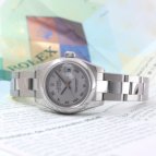 もうすぐ誕生日なので、主人からのプレゼントです。妹もロレックスを持っていて、前々から興味がありました。私は落ち着いた雰囲気の文字盤が好きなので、グレーローマに決めました。