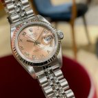 誕生日を迎えるにあたり、記念に友人とROLEXを購入する計画を立て、色々と検索。その中でこの【ピンク・ローマン】に目を奪われ・・。店頭にて現物を見て、予想以上の美しさに【即決】しました。とても素…