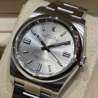 先日、結婚20周年で妻とペアで買いました!!因みに私は、このオイスターパーぺチュアルのブルーを購入し、妻はレディースモデルのオイスターパーペチュアルのブルーを購入しました。ブルーの色合いが落ち着いた雰囲気でブラックよりも柔らかい雰囲気が何ともいえません。妻は出かける時しか着けませんが、私は毎日仕事でも着けて(スーツスタイルですが・・・)、週末のカジュアルな服装の時も着けてます。私の中では相棒になってますね。シンプルながらも、どこか高級感ある雰囲気がたまらないです。ちなみに、私は結構体格は良い方ですが、小さくは感じられませんよ!!今から30周年には何を買おうか一人で考えてます。ロレックスにはまりはじめてます。