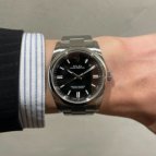 服装にあわせやすいブラックダイヤルを選びました。現行型の126000と一つ前の116000を見比べさせてもらいましたが、116000のほうがメモリの一部が数字だったのでシンプル過ぎないデザインで気に入って、…