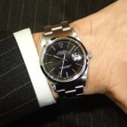 デイトジャストのダイヤ付きを持っていたけれども、オールマイティーでシンプルに着けれるのは黒文字盤だと思い良いのがあったのでこれにしました。