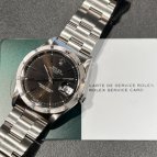 34ミリサイズのオイスターパーペチュアルデイト。立体感のあるエンジンターンドベゼルが魅力的な一本です。2026年3月にオーバーホール・外装仕上げを行っております。多少の小傷は見られますが、雰囲気を損なうほどではなく年式を考慮すると納得のコンディションです。