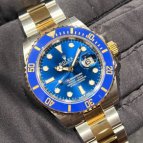 41ミリケースの青サブ。ダイヤル上の白表記が爽やかさをさらに際立たせる魅力的なモデルです。