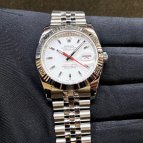 普段はエクスプローラーIの114270を使っていますが、2本目でターノグラフの白文字盤を検討中。デイトジャストと同じ系統でも回転ベゼルが付いていることでスポーツモデルっぽくも見えるし、あと秒針と日付に赤を使っているところがいいですね。生産が終わっているので中古で探すしかないですが、状態の良いのがあれば即ゲットしたいです!!